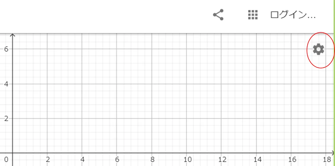 グラフの軸や目盛り等の詳細設定は設定ボタン(下図の丸で囲ったボタン)から変更できます. x軸やy軸の単位やラベルの設定ができます.