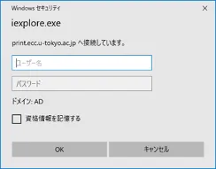 5. ユーザ名欄には「AD\+ユーザ名」を,パスワード欄にはそのパスワードを入力し,「OK」ボタンを押下してください.(ECCS2021 では多くの方のユーザ名は共通ID(UTokyo Accountの先頭10桁の数字のみの部分)です)
