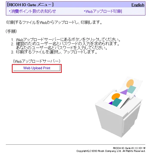 - 続けて,画面の「Web Upload Print」をクリックしてください.