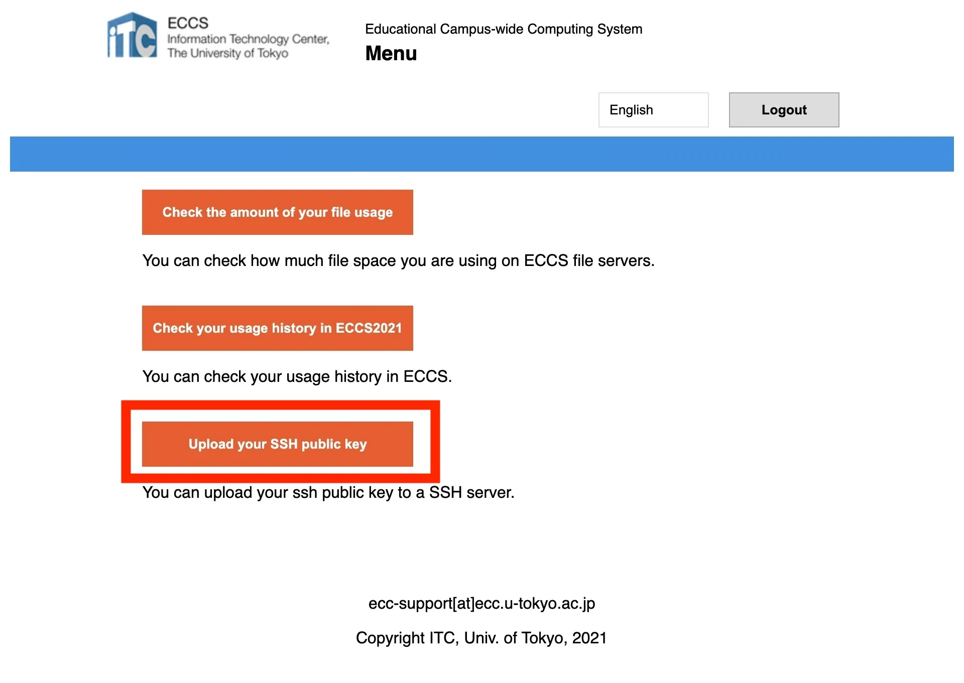 ssh -i ~/privatekey.txt 0123456789@ssh01.ecc.u-tokyo.ac.jp