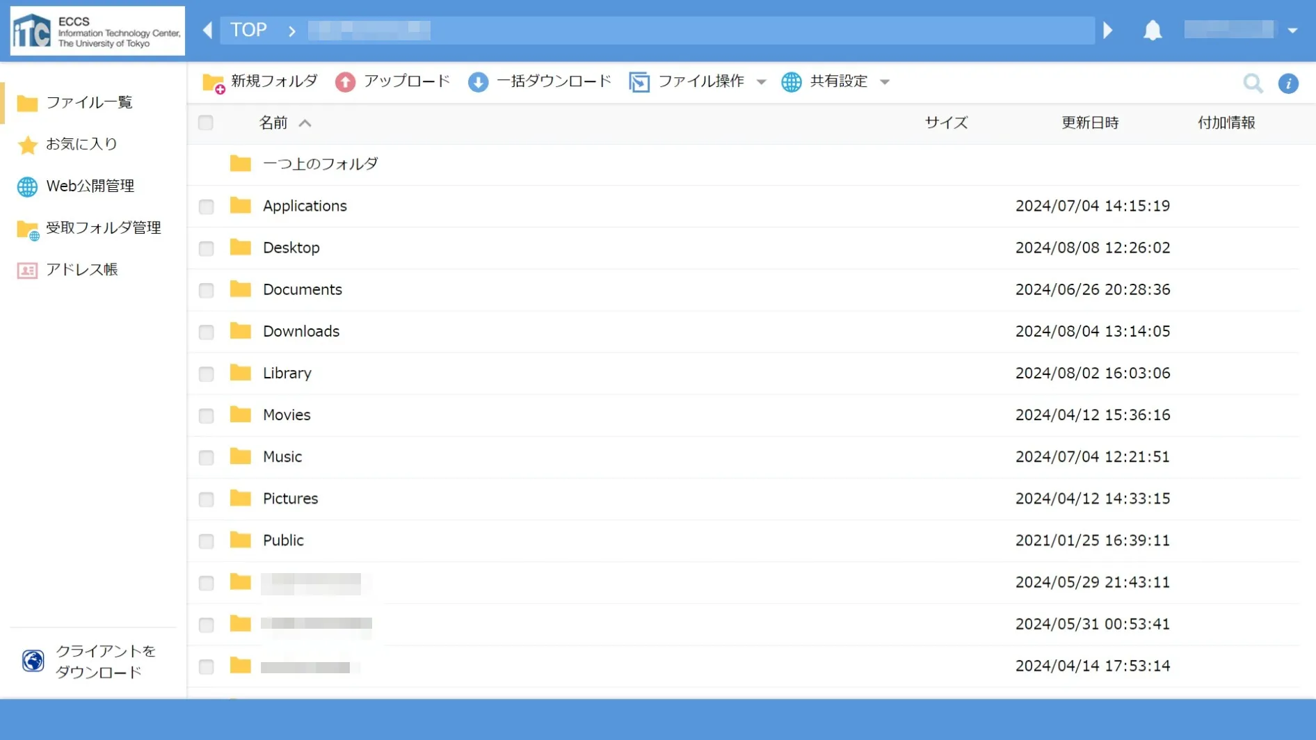 - 選択した環境のファイルが表示されます.表示されているフォルダを選択すると,そのフォルダの内容が表示されます.