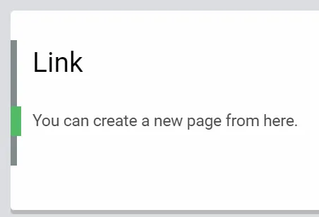 If you click on the “Link” string in the previous image, you will be taken to a new page with the title “Link”. From here, you can create a new page by typing the text.
