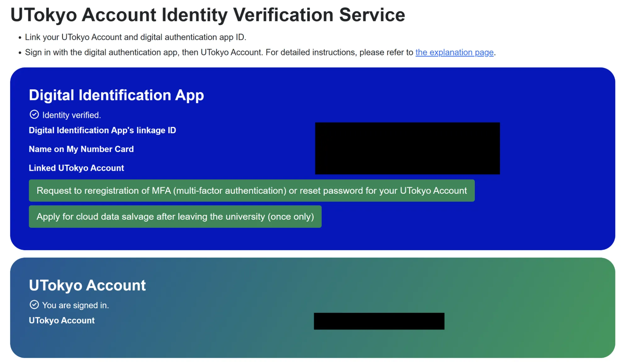 - You have completed the pre-link process for the UTokyo Account Identity Verification Service.