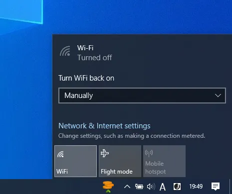Select the globe icon in the taskbar, and then select the fan-shaped “Wi-Fi” icon to enable the Wi-Fi function. If there is only the fan-shaped “Wi-Fi” icon but no globe icon, simply select the former.