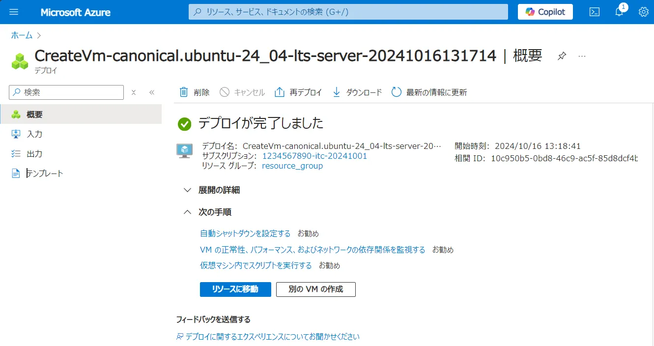 • デプロイしたマシンからhaltshotdownを実施してもマシンは停止しますが,Azure Portal のリソース上は起動したままの表示になっていますので,改めて起動したい場合は再起動をクリックしてください.