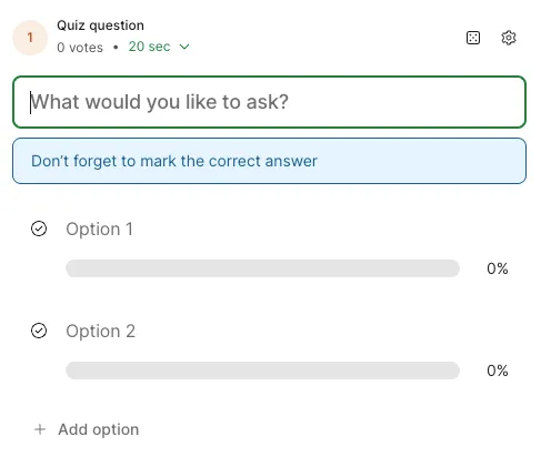 投票を作成するには,画面左上の「+Add (Add new interaction)」を選択してください.