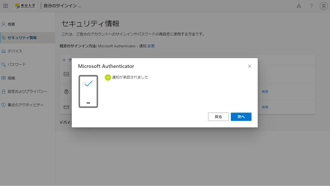 次に,ここまでに登録した本人確認方法を利用してUTokyo Accountにサインインすることができるか確認します.