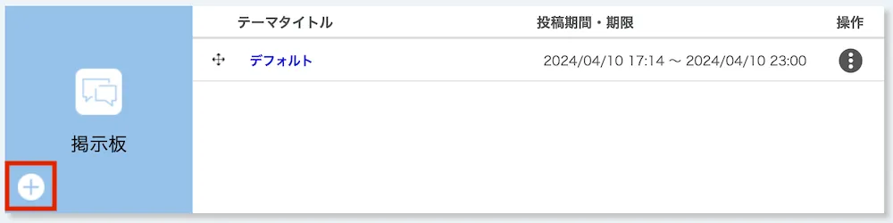 - 「掲示板」欄内で,スレッドを登録したいテーマの右側にある