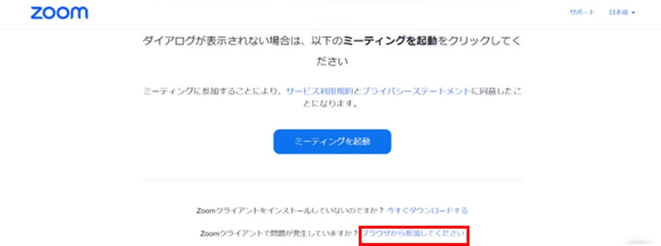1. 下図の画面下部にある「ブラウザから参加してください」を押してください